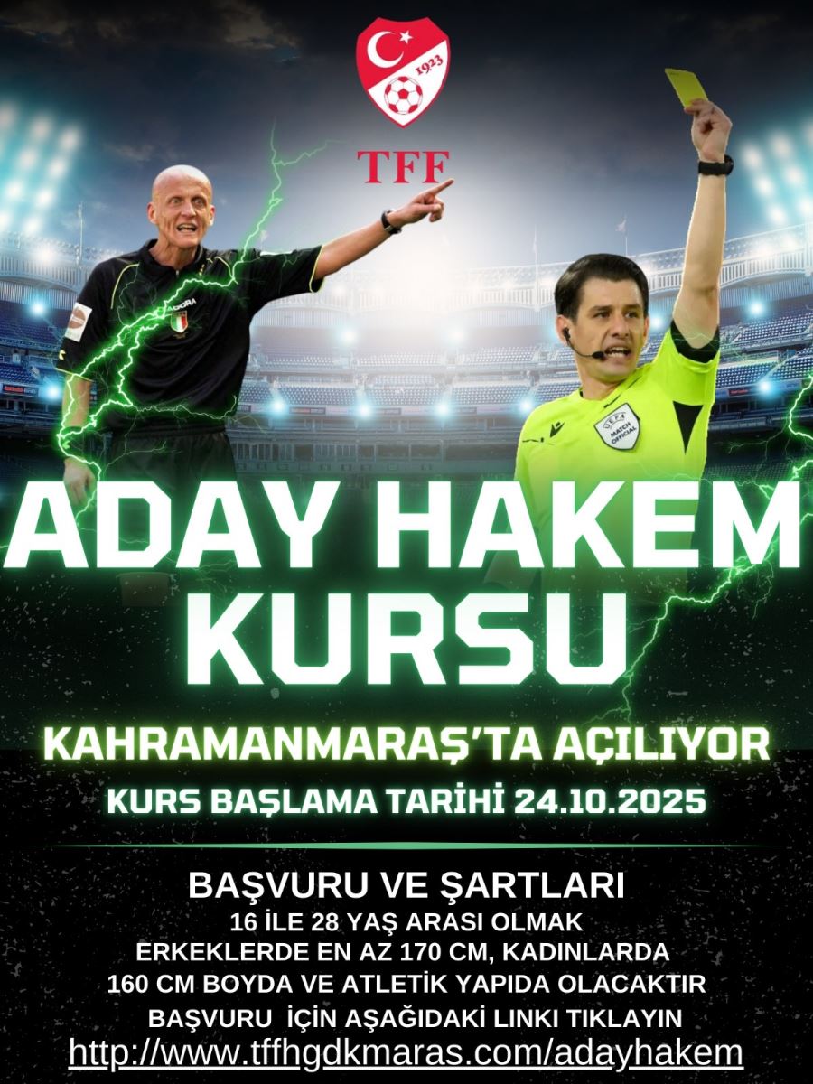 24 Ekimde başlayacak olan Futbol Aday Hakem kursu başvuruları devam ediyor.